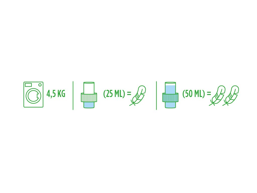 Obsahuje změkčující složky na bázi přirozených živočišných lojů. Neutralizuje elektrostatický náboj. Použitý jemný ovocný parfém příjemně provoní prádlo.
