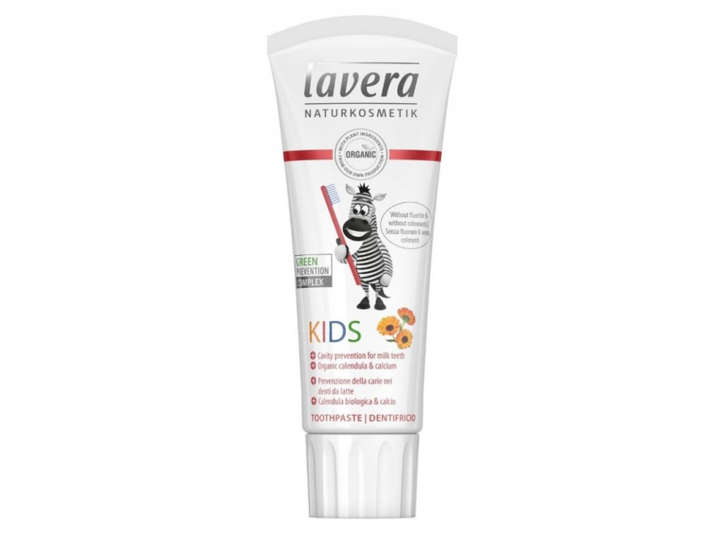Přírodní zubní pasta bez fluoridů a barviv šetrně pečuje o dětské zoubky. Obsažený vápník je posiluje a pomáhá jejich správnému vývoji. Pasta čistí zubní plak, předchází vzniku kazů, chrání a posiluje dásně. Výtažky z Bio Měsíčku zklidňují a regenerují drobná podráždění v dutině ústní, například při prořezávání zoubků. Pasta má jemnou ovocnou vůni a chuť, kterou si děti oblíbí.